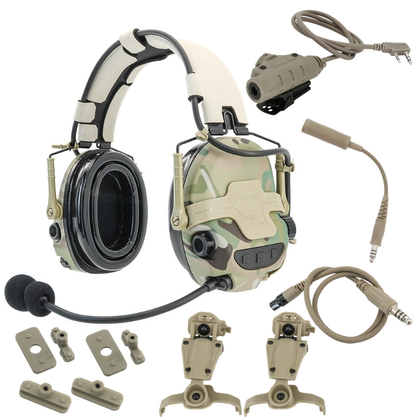 TS TAC-SKY T700 Active Noise Cancellation Tactical Headset with ARC Rail helmet Bracket + V2 PTT + U174